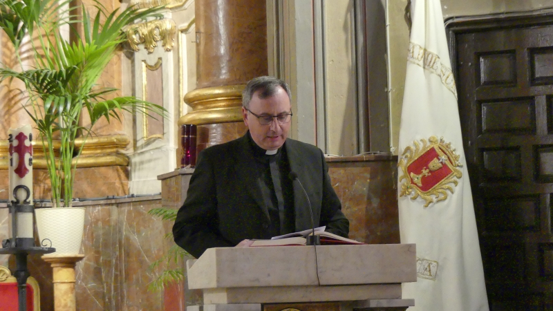 Esta Conferencia suele ser pronunciada por el Pregonero de la Semana Santa de cada año, el cual en esta ocasión es Moseñor D. Carlos Amigo Vallejo, Arzobispo emérito de Sevilla. Por motivos de agenda y múltiples compromisos en estas fechas de oración, excusaba asistir a este entrañable acto. Así pues, la entidad organizadora pensaba en D.Antonio Fernández Ferreros, Vicario General de la Diócesis de Cuenca, Dean del Cabildo Catedralicio y Párroco de la Iglesia de San Esteban en nuestra ciudad para considerarle la persona idónea para suplir esta ausencia dado su relevante cargo eclesiástico en la Diócesis.