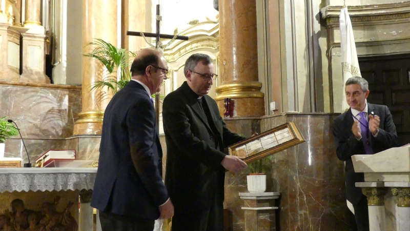 Al término de su discurso, el Representante de la Hermandad, Francisco Ruiz Martínez, le hacía entrega de un bonito mosaico con la imagen de Nuestra Señora de la Soledad, como muestra de agradecimiento y reconocimiento por fomar parte de este grupo de oradores.