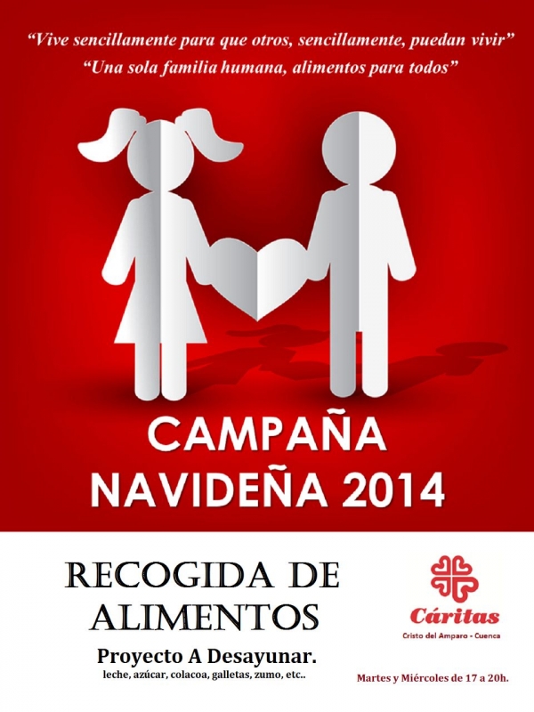 Como en años anteriores, la Hermandad va a desarrollar durante estas navidades una doble campaña solidaria. "Por un lado, vamos a colaborar con Cáritas Parroquial en la recogida de alimentos para las familias de Cuenca que más lo necesitan, y por otro, colaboramos con el grupo de fotógrafos de La Santa Torrija a través de la venta de unos marcapáginas de las Hermandades participantes en la Ruta de Belenes al precio de 1 euro y cuyos beneficios se destinarán también a fines solidarios", añade.