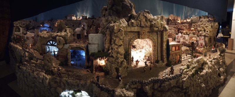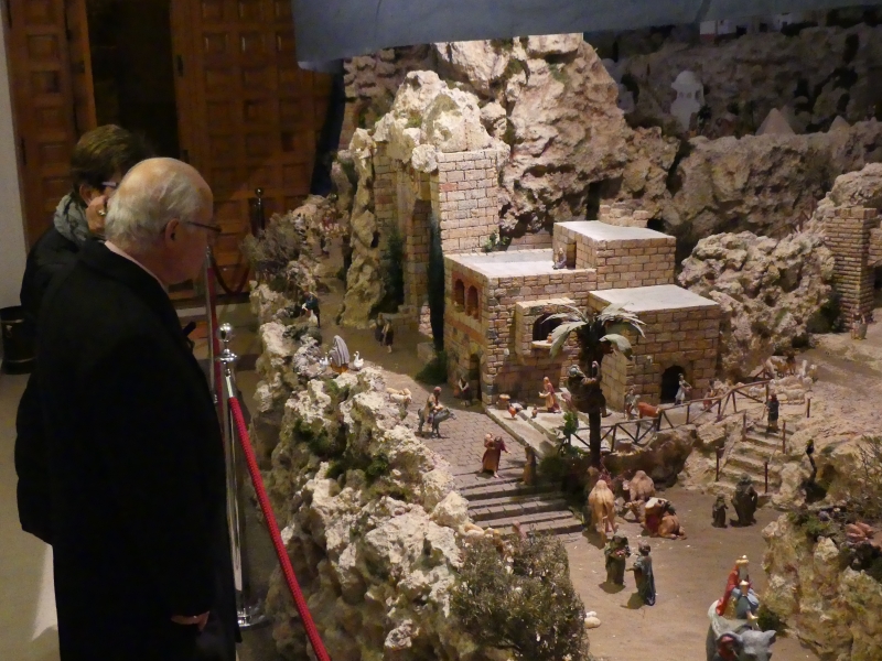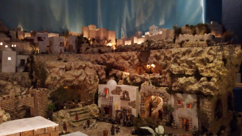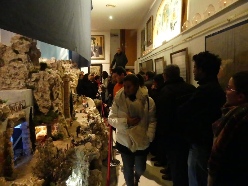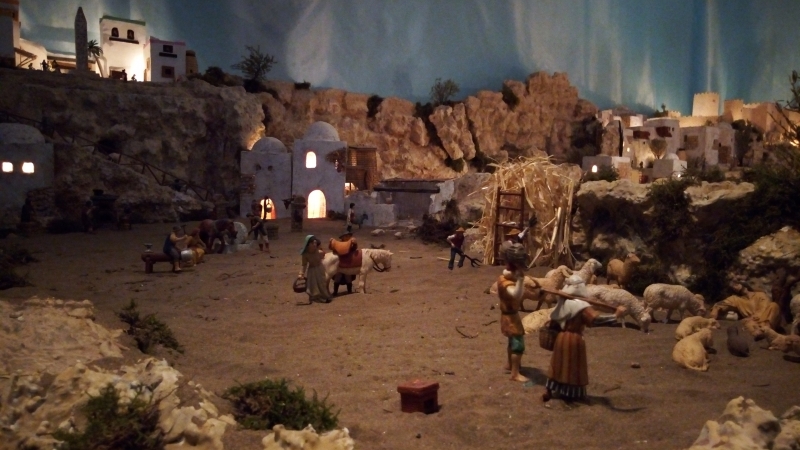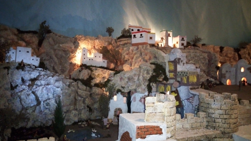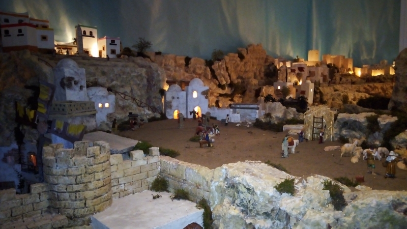 Un total de cerca de 400 piezas componen este Belén de alrededor de 25 metros cuadrados donde se pueden apreciar todas las escenas de la natividad de nuestro Señor. Este año, los artistas belenistas han dotado a esta representación navideña de distintas escenas que aportan la novedad que siempre se busca en nuestro Belén, junto a otra disposición de las ya habituales, que siendo las mismas, se ofrecen al visitante en otra posición y ubicación.