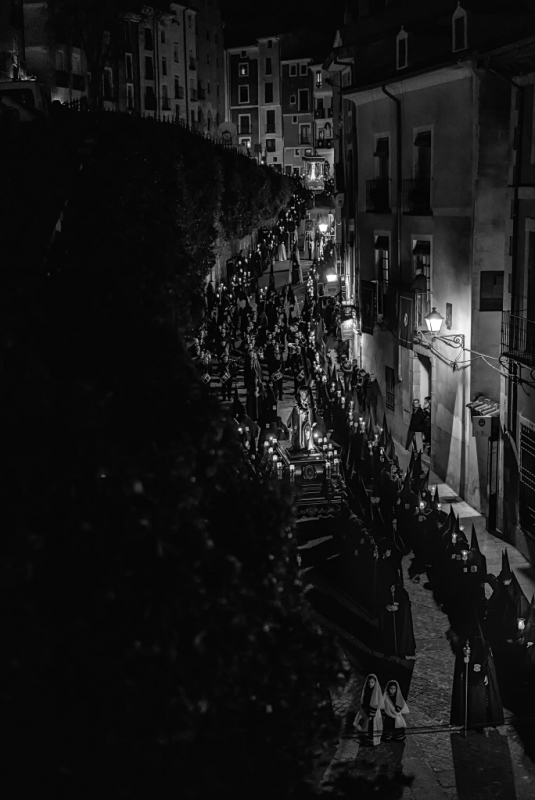 El primer accésit especial, dotado con 70 euros, ha recaído para la fotografía que lleva por título “RÍO DE PASIÓN” y cuyo autor es JOAQUÍN RUIZ ARTEAGA, una imagen serpenteante de la parte final de la Procesión de Paz y Caridad en su descenso por la calle Alfonso VIII en la tarde-noche del Jueves Santo.