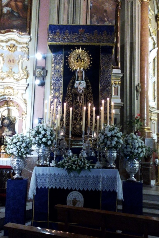 Un nuevo Altar de Cultos para la Virgen elaborado por varios jóvenes con un bonito dosel e iluminado con candelería natural y un armonioso adorno floral, presidía la ceremonia religiosa que bajo los acordes de un dueto de cuerda y viento, llamaba a la oración y el recogimiento. Tras las palabras del Consiliario en su omilia, rogando a la Virgen por todos nosotros y acercándonos a la fe y al fervor por nuestra Madre, se procedía al intercambio de poderes de los Hermanos Mayores, dando por terminado así un año nazareno y dando paso a uno nuevo. Los Hermanos Mayores que entraban ayer a formar parte de la Junta de Diputación de la Hermandad son Francisco López Martínez, Mari Carmen Grande Guijarro, Antonio Echavarría Truchado, Paulino Gallego Ballesteros, Ana Belén Grande Guijarro, Jose Fº Moya de la Torre, Carla Lozano Portilla y Carlota Ruipérez Bascuñana.