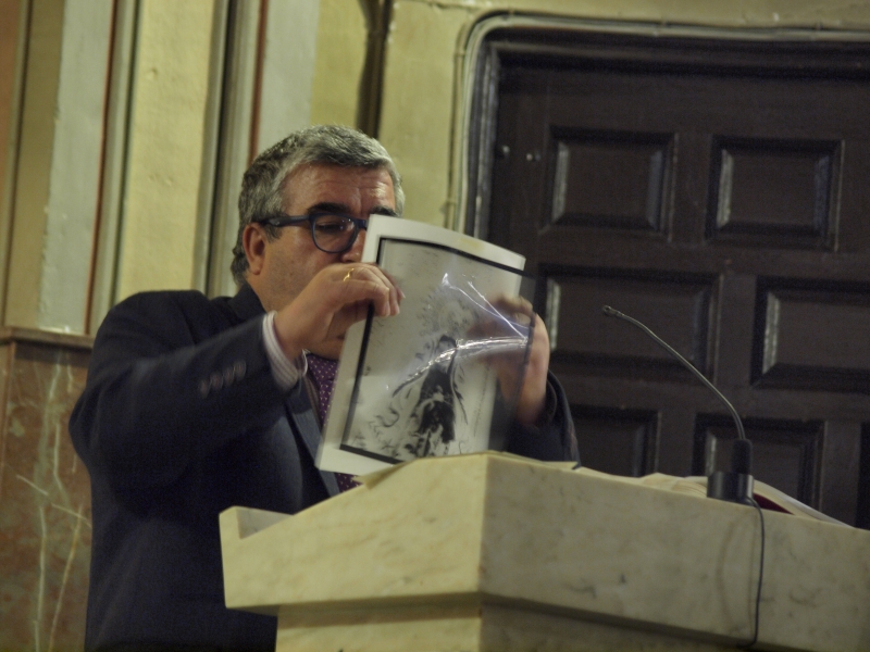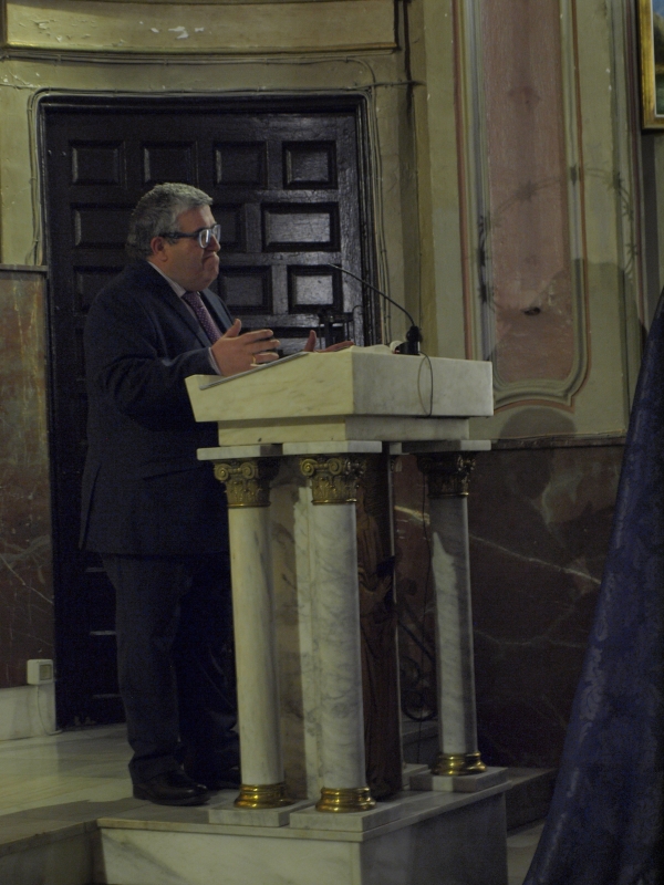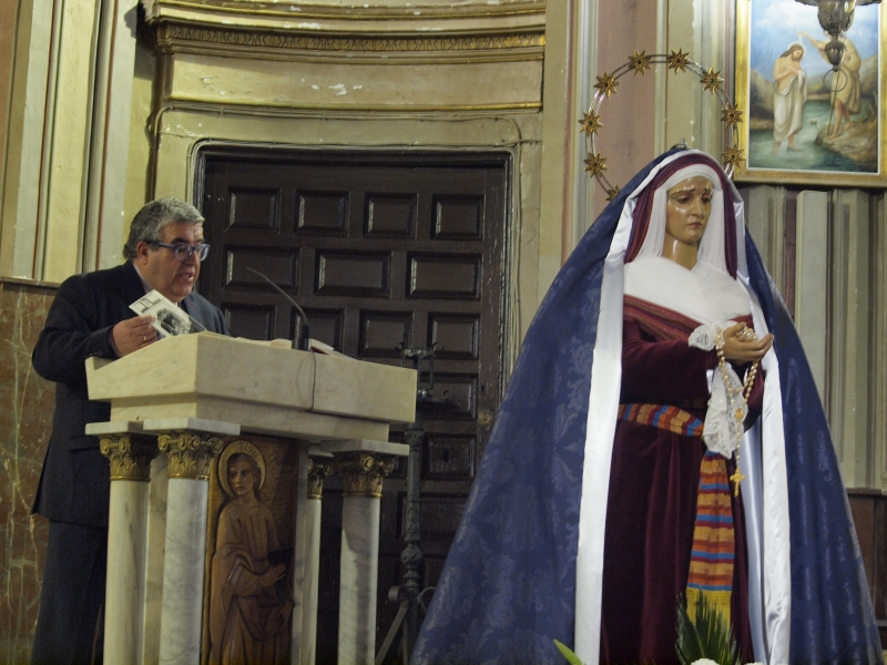 En un acto celebrado en la Iglesia de la Virgen de la Luz, el Pregonero de la Semana Santa de Cuenca, José Vicente Ávila, cumplía con la cita cuaresmal de nuestra Asociación Cultural ofreciendo una interesante charla a todos los presentes que llenaban el templo. Asistían al acto los Hermanso Mayores y miembros de la Junta de Diputación de la Hermandad mientras que el Caurteto de cuerda y viento ponía el aporte musical. Con todo dispuesto, el periodista y perfecto conocedor de la Semana Santa de nuestra ciudad arrancaba su discurso con “Algunas pinceladas históricas de la Soledad del Puente y un Jueves Santo de granizo y morado”, refiriéndose a la procesión de Paz y Caridad de 1998.