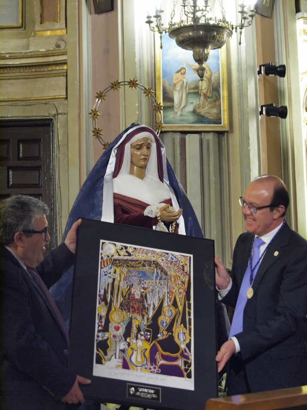 A l término de sus palabras, el representante le hacía entrega de una réplica del cuadro que regalo Tomas Bux en el 75 aniversario de la llegada de la Virgen a Cuenca. Acto seguido el pregonero devolvía al representante de la Hermandad el detalle con la entrega de una fotografía de Antonio Texeda de 1966, otra fotografía de José Luis Pinos de 1998, dos fotografías propiedad del propio José Vicente Ávila de 1993 y dos fotografías de la Soledad del Puente de los Hermanos Culebras publicadas en el Extra de Cuenca Agraria en 1990.